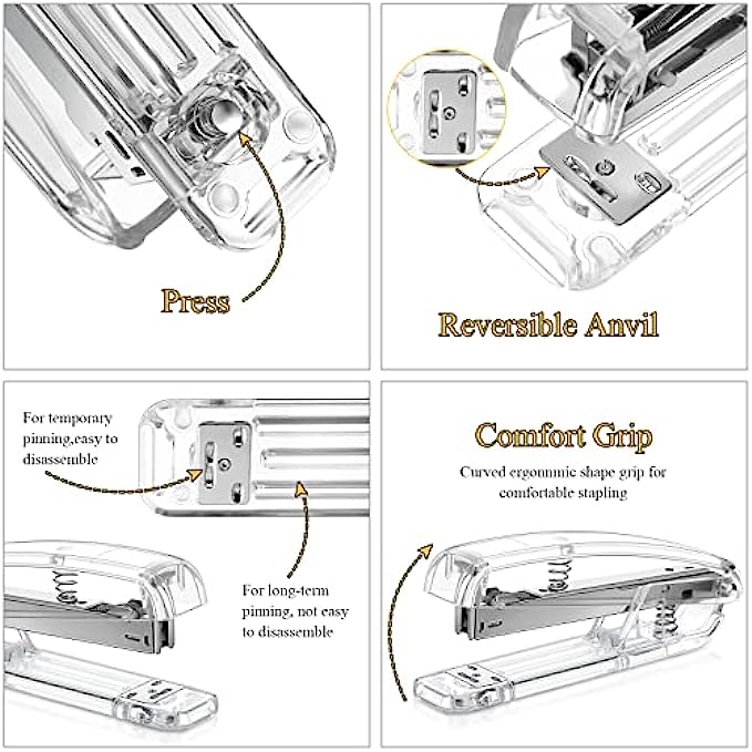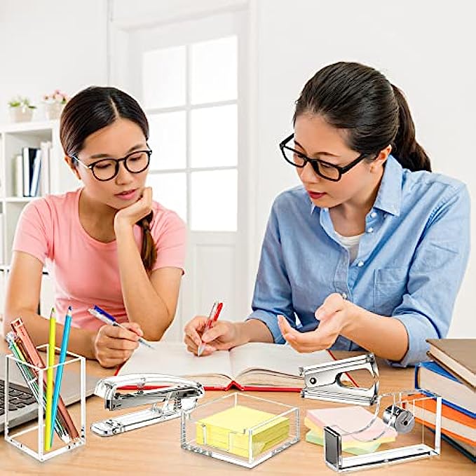 Package Content: you will receive 2 clear acrylic staplers with 2000 staples, 2 notepad holders and 2 acrylic pen holders, 2 staple removers and 2 tape dispensers, sufficient in quantity and rich in combination to meet your different needs for home and office use