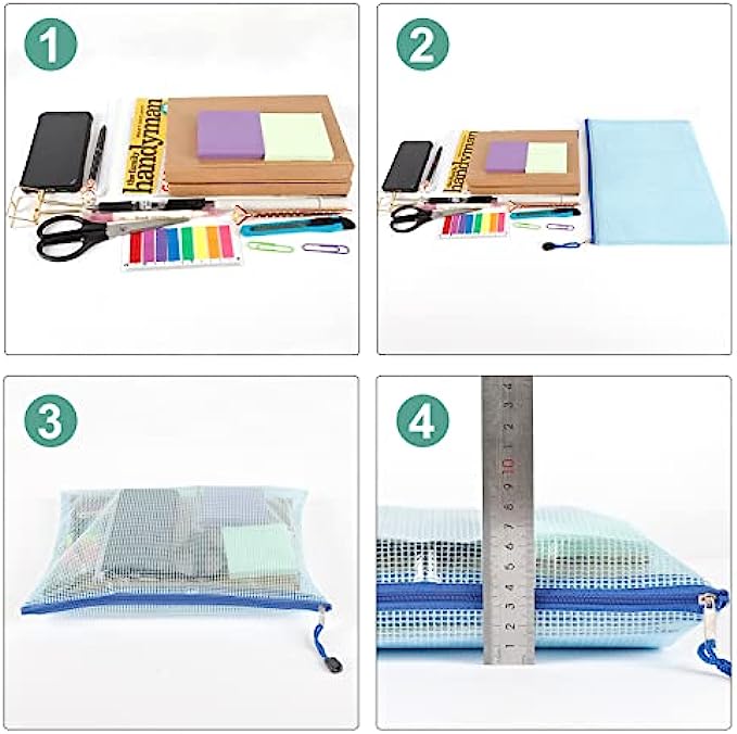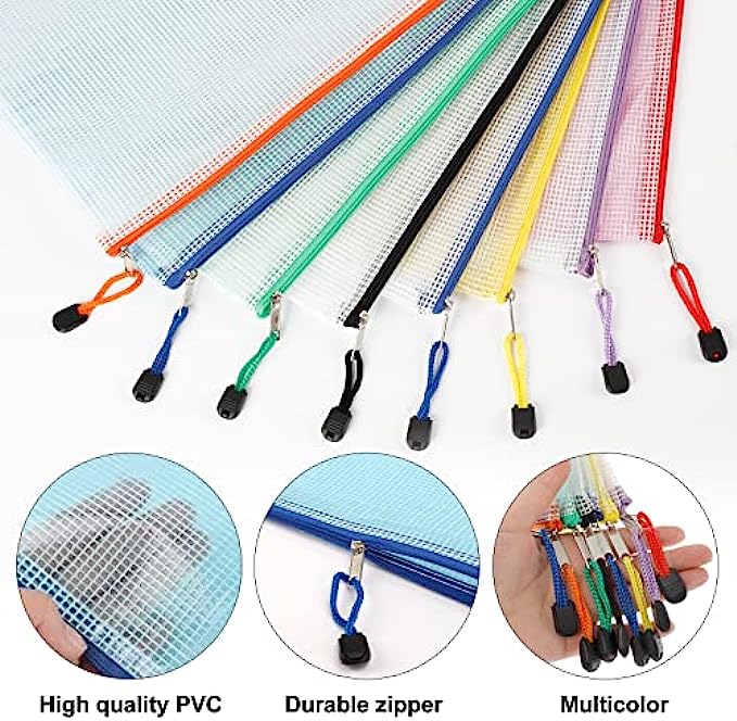 PRODUCT SIZE: 13.2" x 9.25"/33.5cm x 23cm. The mesh zipper pouch larger than letter size/A4 size, please confirm the size of the product carefully before purchase.